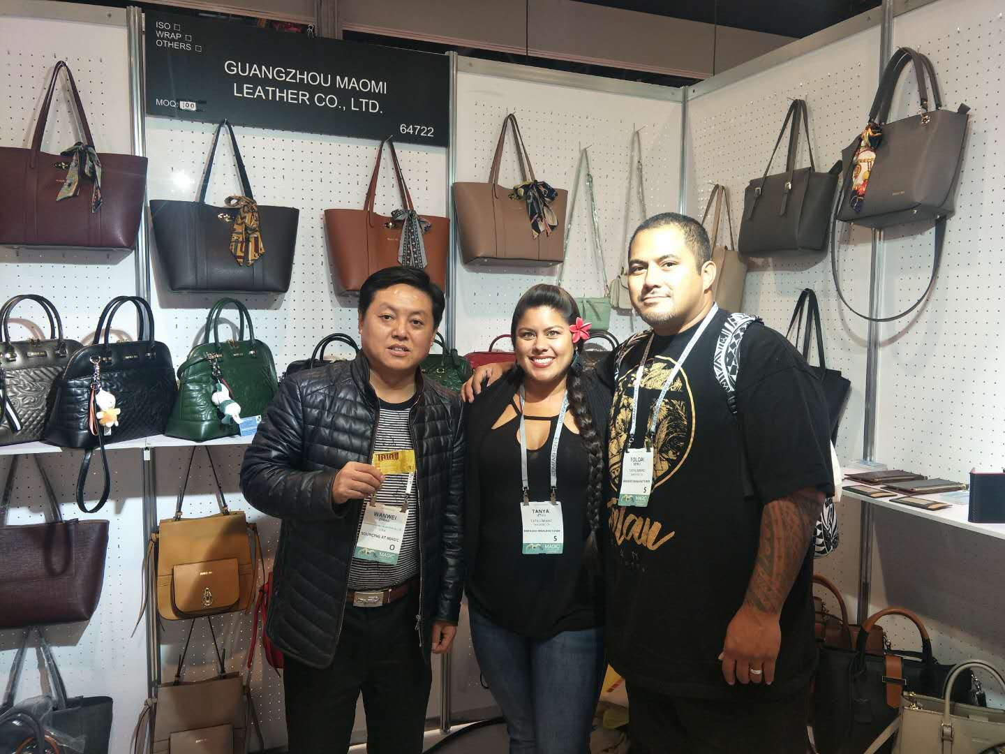 今年2月份,正值农年历年除夕之前,广州市猫咪皮具有限公司的总经理张万伟先生带着我们最新设计的包包参加了美国拉斯维加斯的Magic展。展会上客户对我们的包包质量和款式都非常满意,有的客户现场就下了样板单。如果您对我们的参展款式感兴趣,欢迎和我们联系,谢谢!